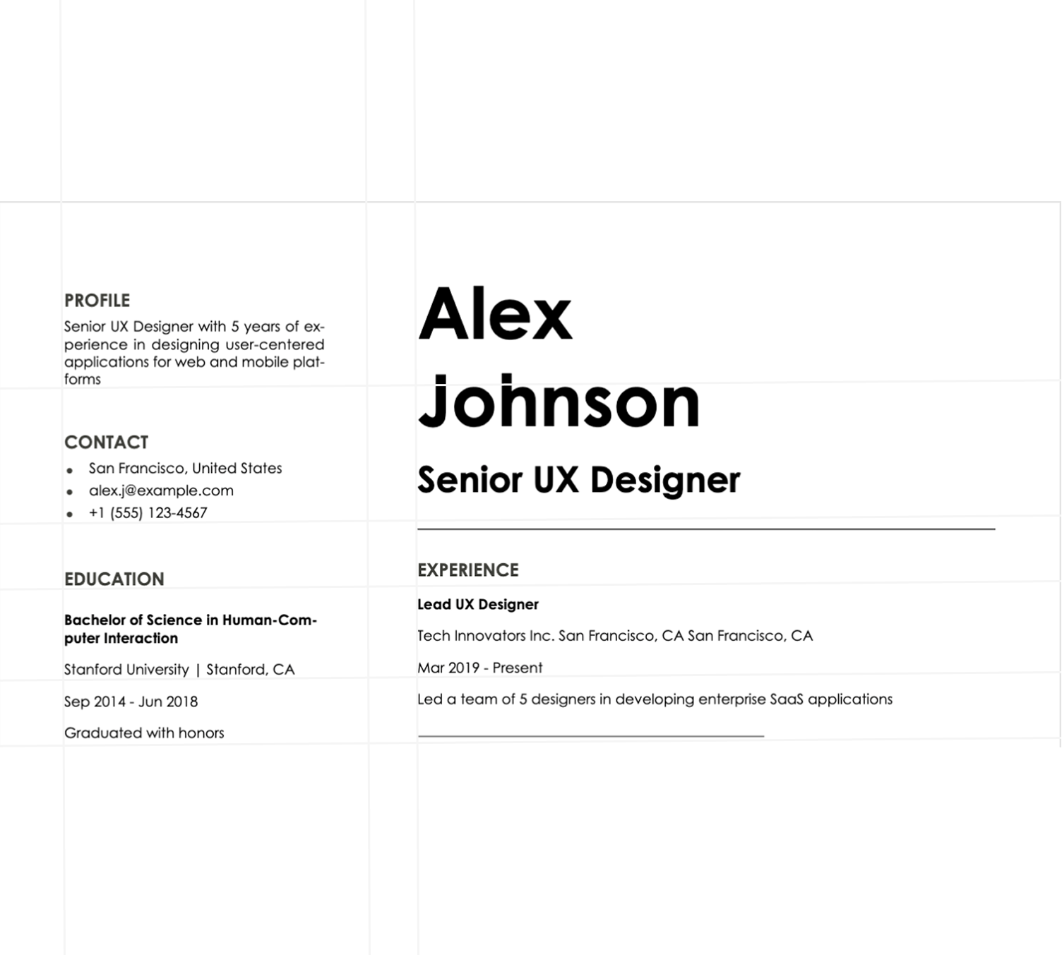 Con Laddro, no tienes que ser un experto en ATS para crear un currículum que obtenga resultados. Nuestra plataforma proporciona la base – plantillas compatibles con ATS, una estructura clara y una edición fácil – para que puedas concentrarte en mostrar tus habilidades y experiencia.